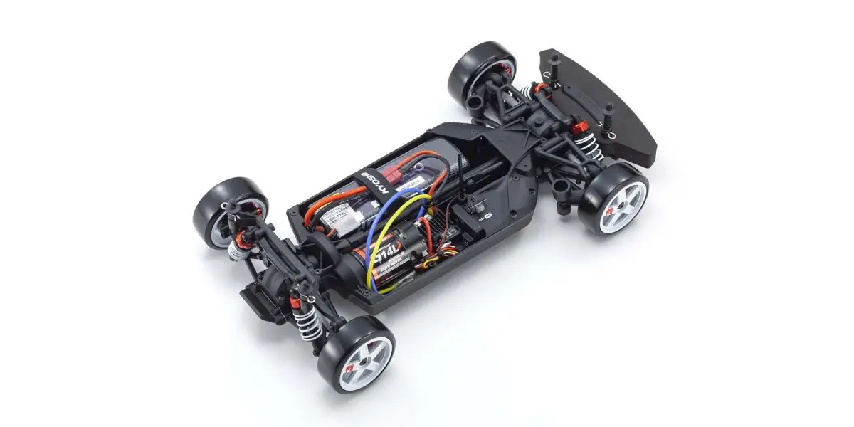 For the pure enjoyment of R/C car driving, the combination of a beautifully reproduced car body with the FAZER series chassis can’t be beaten. Kyosho has taken its standard touring car chassis and given it a full model makeover that has evolved performance to a new level. A simplified design with fewer parts has improved maintenance efficiency and reduced weight while core strength and rigidity has been increased through new materials and ribbing and stiffeners on front and rear. In addition, the symmetrical chassis design synergizes excellent front-rear balance through the suspension with responsive control, irrespective of power source. Featuring slipper clutch, front & rear gear differentials, oil shocks and full ball bearing specs, the high durability and impact resistance allows drivers to unleash the full potential of the chassis. Brake disc wheel hubs with two different offsets (0mm, +5mm) provide compatibility with 190mm and 200mm width body styles and allows the wheelbase to be adjusted to 274mm by replacing some parts (sold separately) for compatibility with other 1/10 scale body styles, in addition the body included. The Readyset package comes fully assembled and includes everything except charger and battery for the chassis, and batteries for the transmitter.